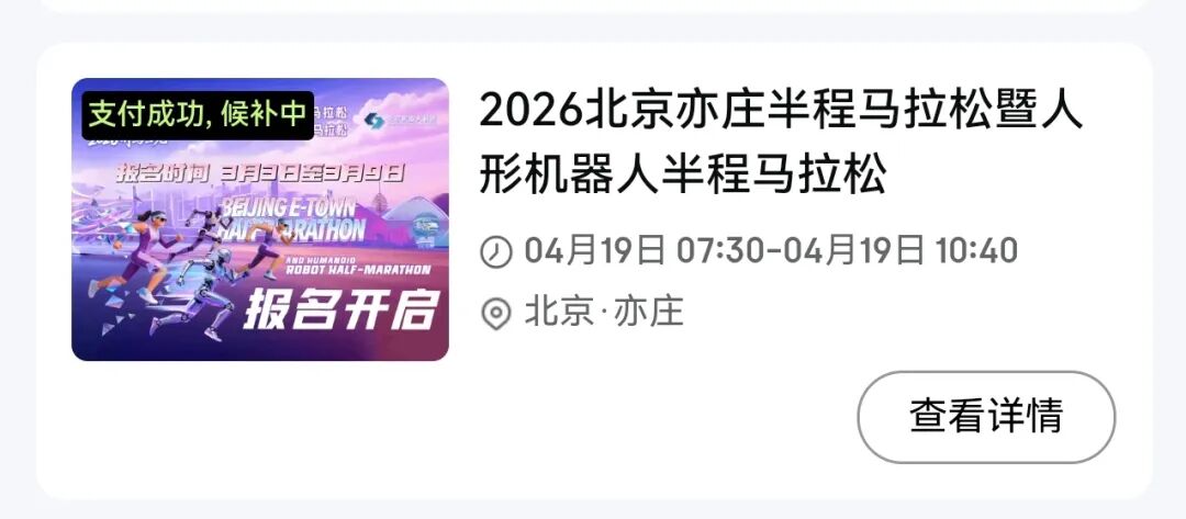 通过“京东GO”小程序、【北京亦庄半程马拉松】微信公众号、“亦竞派”赛事官网渠道报名的运动员,统一到原报名平台——“京东GO”小程序完成缴费,切勿跑错通道哦!