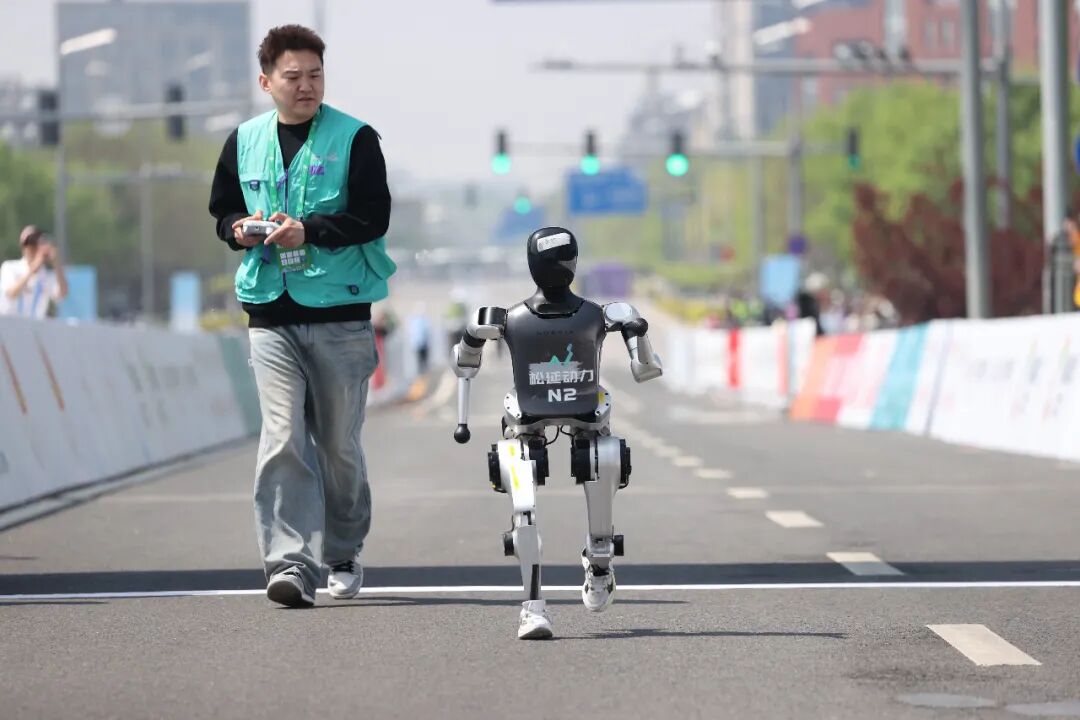 “不同于人跑马拉松是个体之间的较量,人形机器人跑马拉松是人机协同的综合比拼。”梁靓表示,“我们举办的这场赛事更像是一场赛车竞技,操作手就像赛车手一样跟在机器人身边,进行辅助或操控。因此,赛事除了测试和展示机器人本身的关节、动力电池、材料、通信等方面的稳定性之外,还考验机器人团队的操作、控制、研发训练等整体水平,对未来机器人产业发展具有重大意义。”