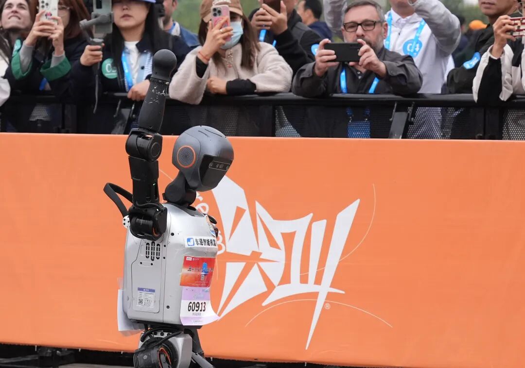 人形机器人“天工Ultra”冲线夺冠。