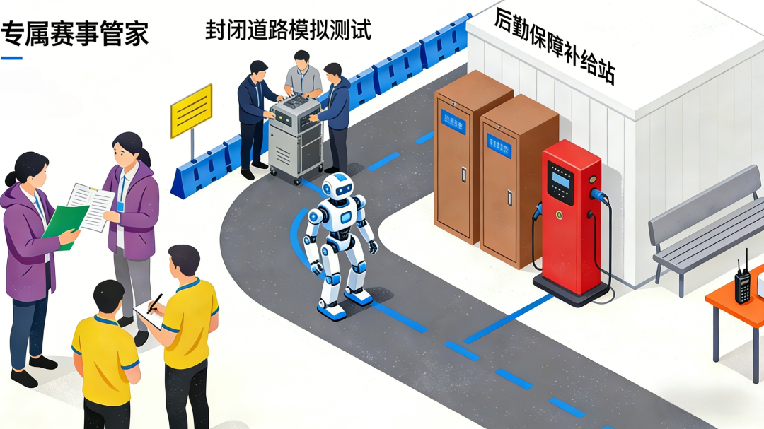 借鉴首届赛事成功经验,提供集中技术调试区、配备专业充电保障的补给站,并为机器人与技术人员安排独立的存放与住宿空间,确保全程备赛无忧。